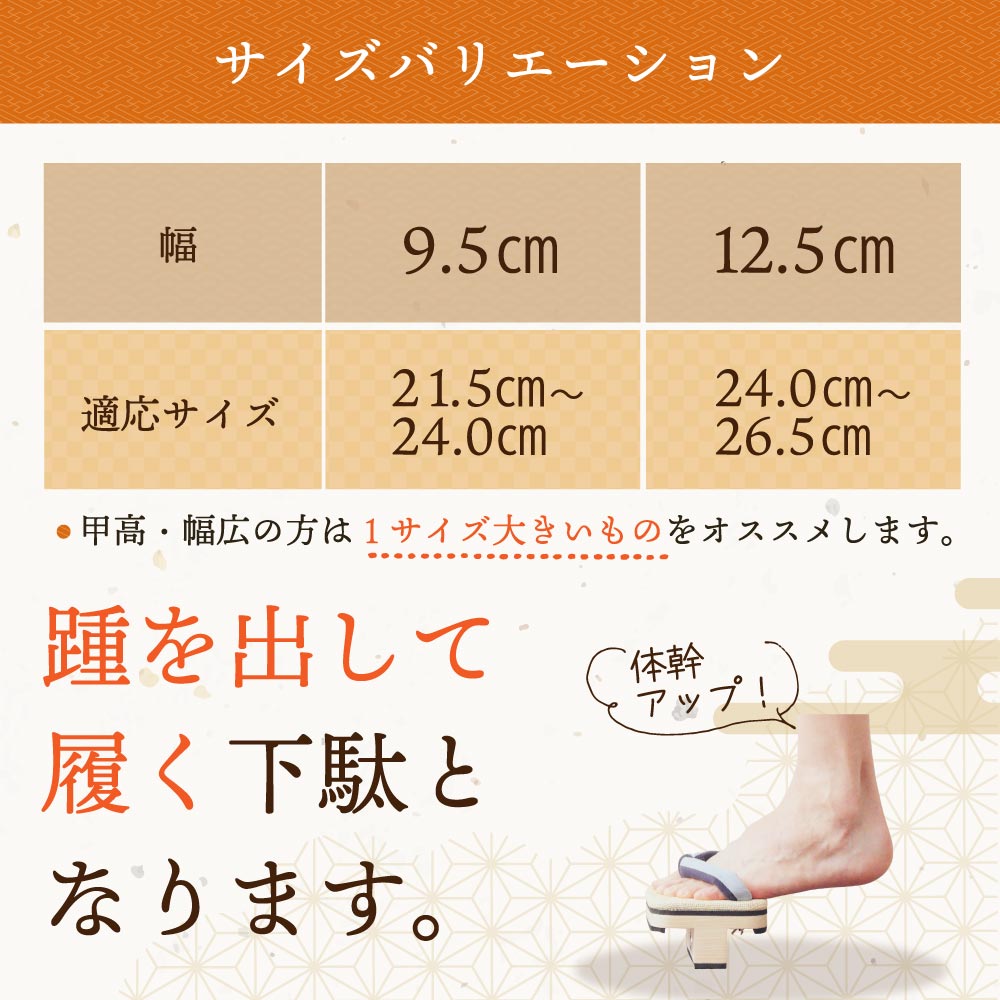 使用上の注意 | 1.下駄は傷つきやすいので取り扱いは十分ご注意下さい。 2.濡れた場所ではスリップに注意してくだい。 3.水に濡れた場合、花緒が破損、色落ちする恐れがあります。 4.表に足の跡が付くことがございます。 5.バランスを崩しケガをする恐れがあります。 |