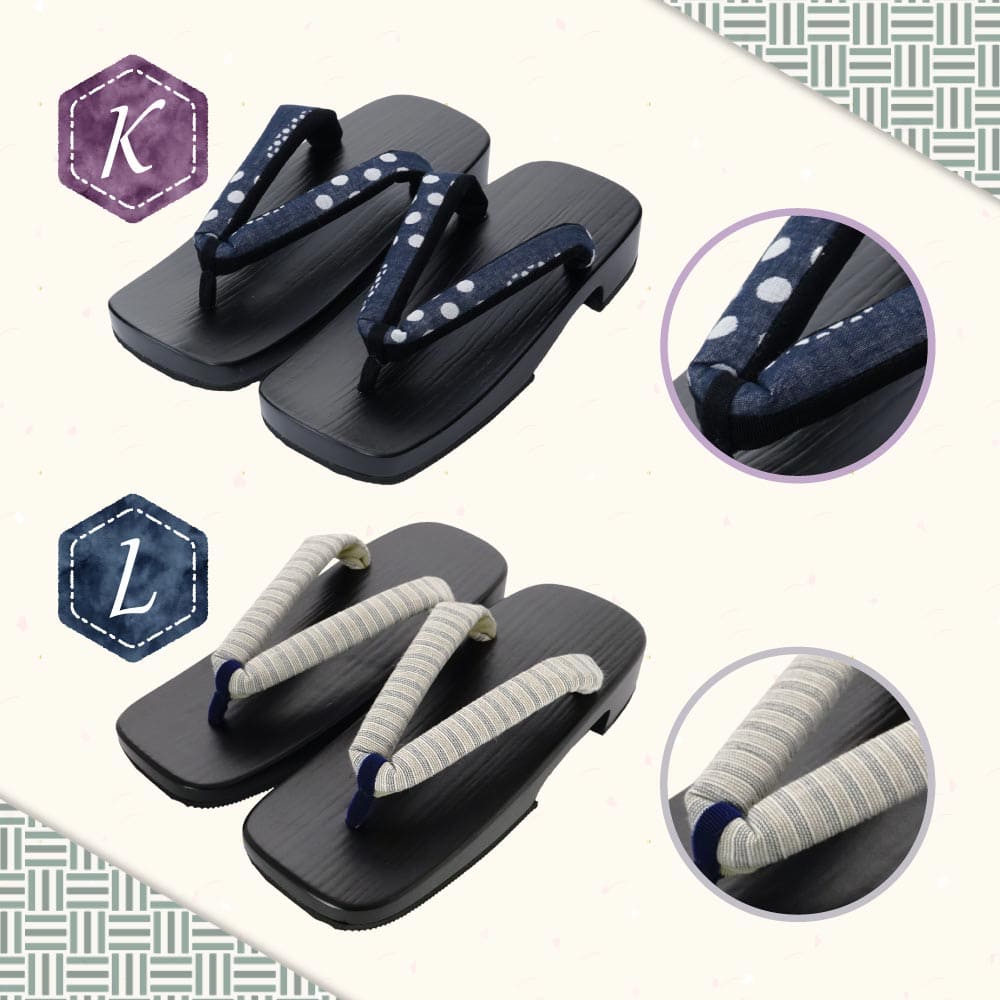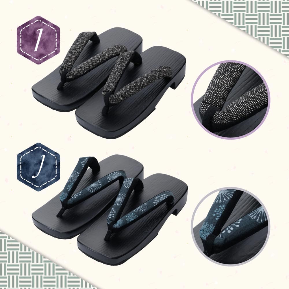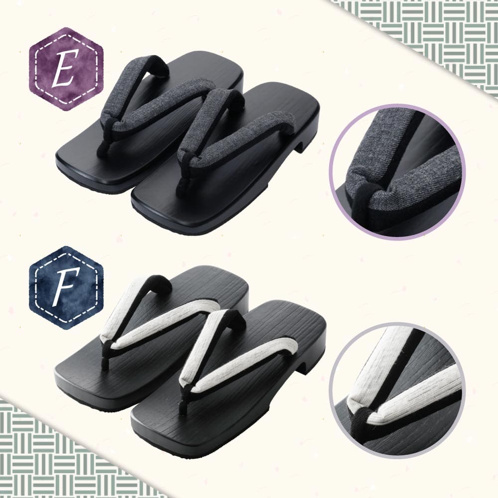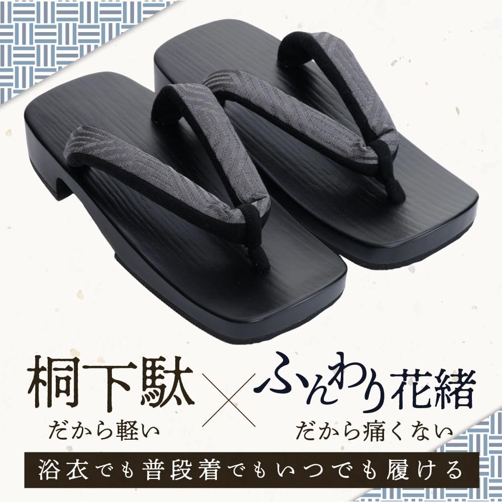 | 使用上の注意 | 1.下駄は傷つきやすいので取り扱いは十分ご注意下さい。 2.濡れた場所ではスリップに注意してくだい。 3.水に濡れた場合、花緒が破損、色落ちする恐れがあります。 4.塗下駄は、衝撃を与えると塗りが剥がれることがあります。 |