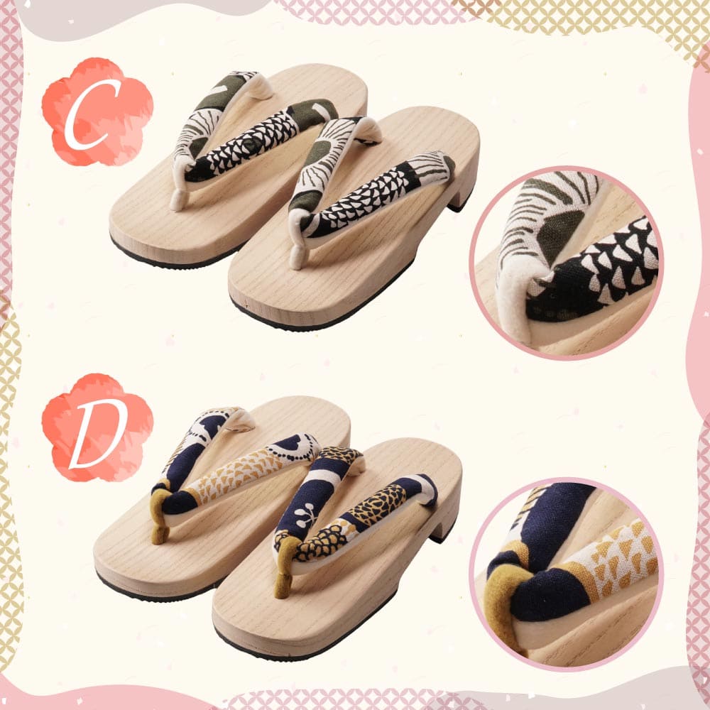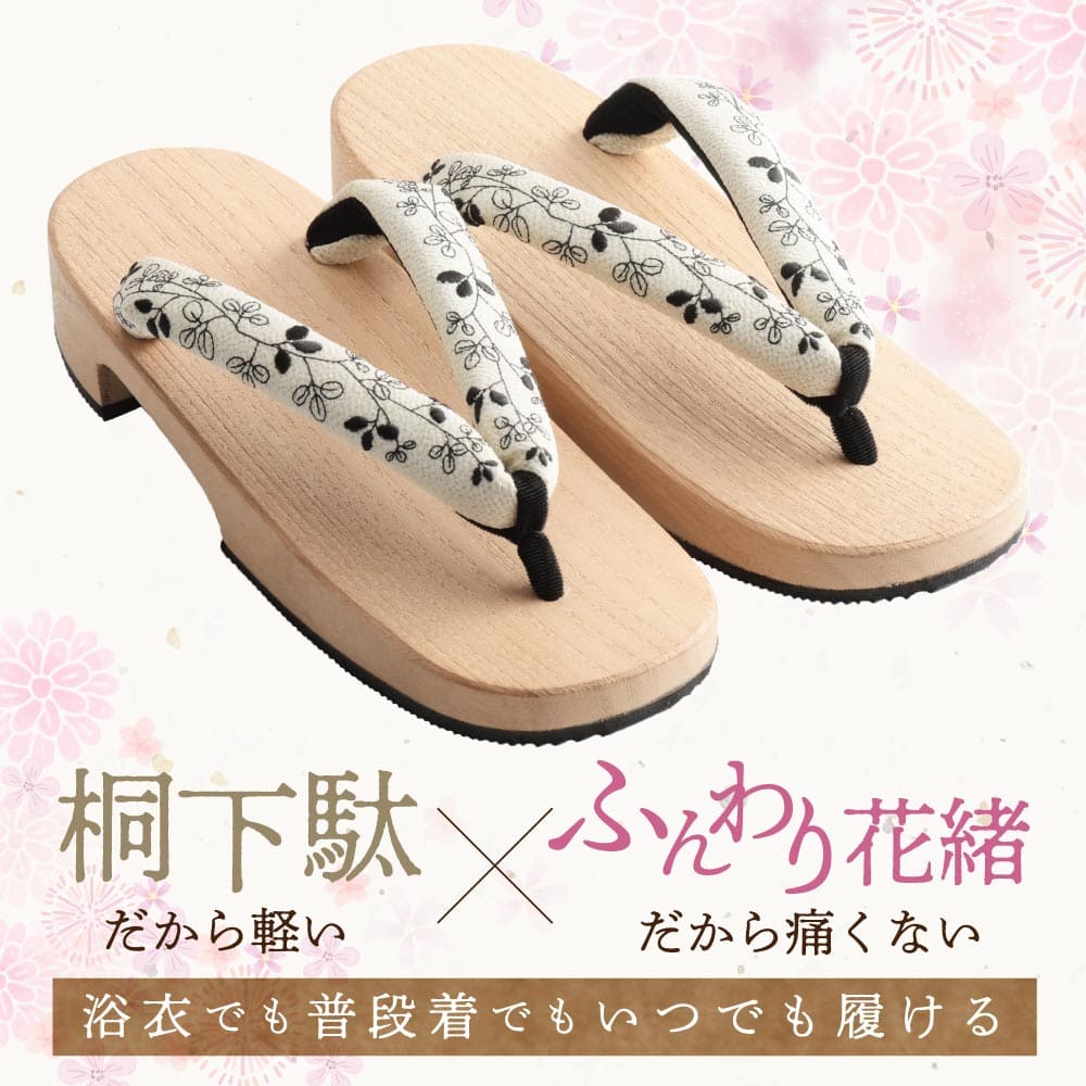 | 使用上の注意 | 1.下駄は傷つきやすいので取り扱いは十分ご注意下さい。 2.濡れた場所ではスリップに注意してくだい。 3.水に濡れた場合、花緒が破損、色落ちする恐れがあります。 4.白木下駄は、足の跡が付く事があります。 |