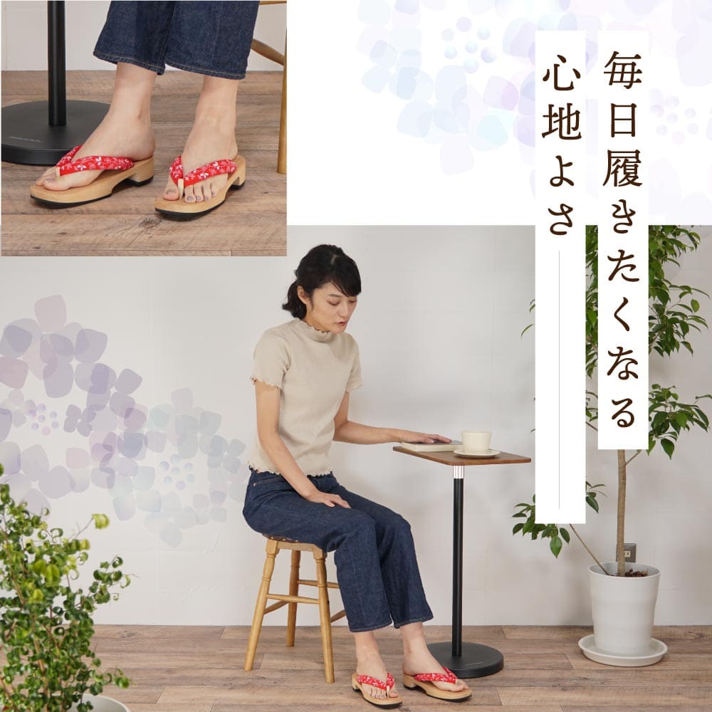 ※自然木を使用している為、写真とは木目や色目が異なる場合がございます。 ※大きな生地を細く切って花緒に使用していますので、それぞれ柄の出具合が違っており写真とは見た目が異なることがあります。 ※デジタルカメラ、モニターの性能上、画像の明るさや色合いなどが、多少実物と異なる場合がございますが、ご了承下さい。 | |