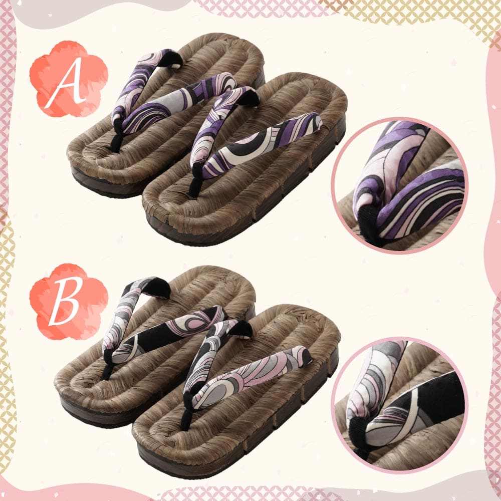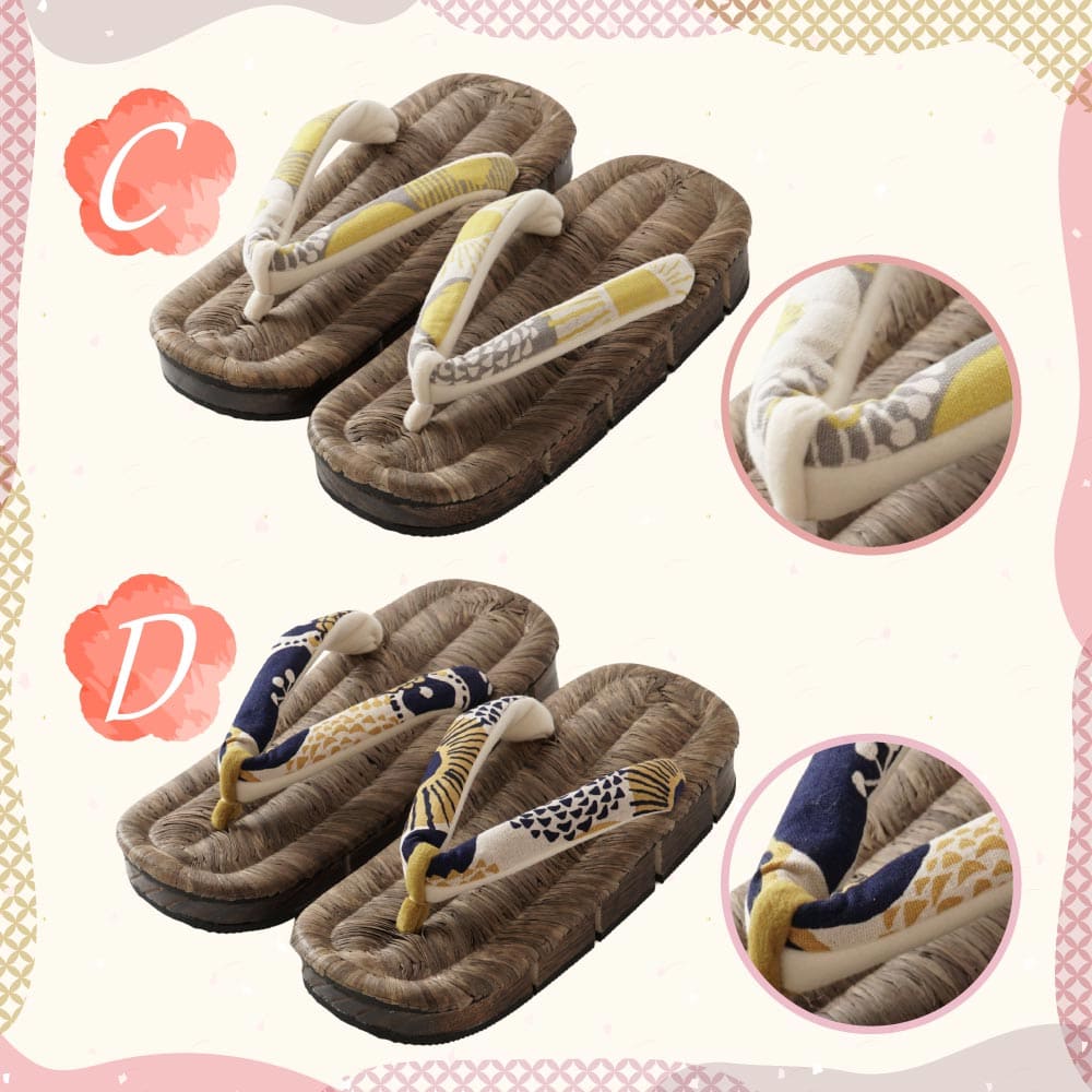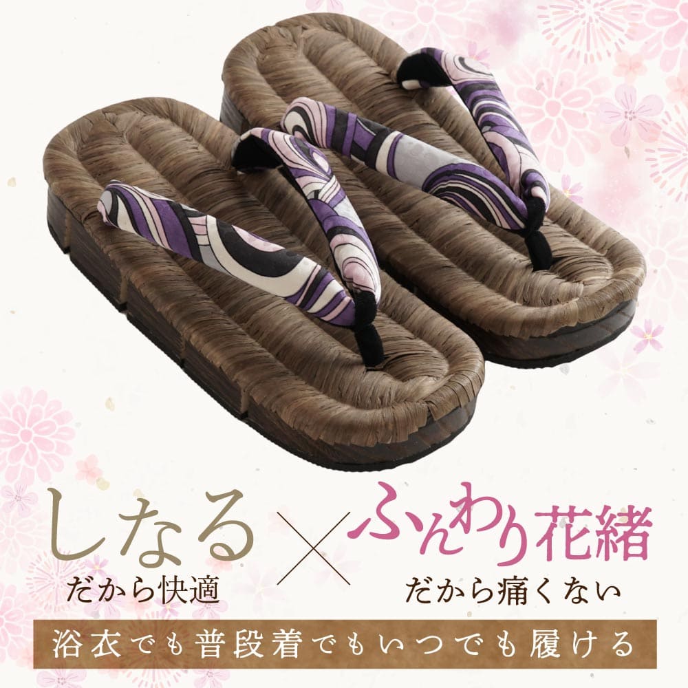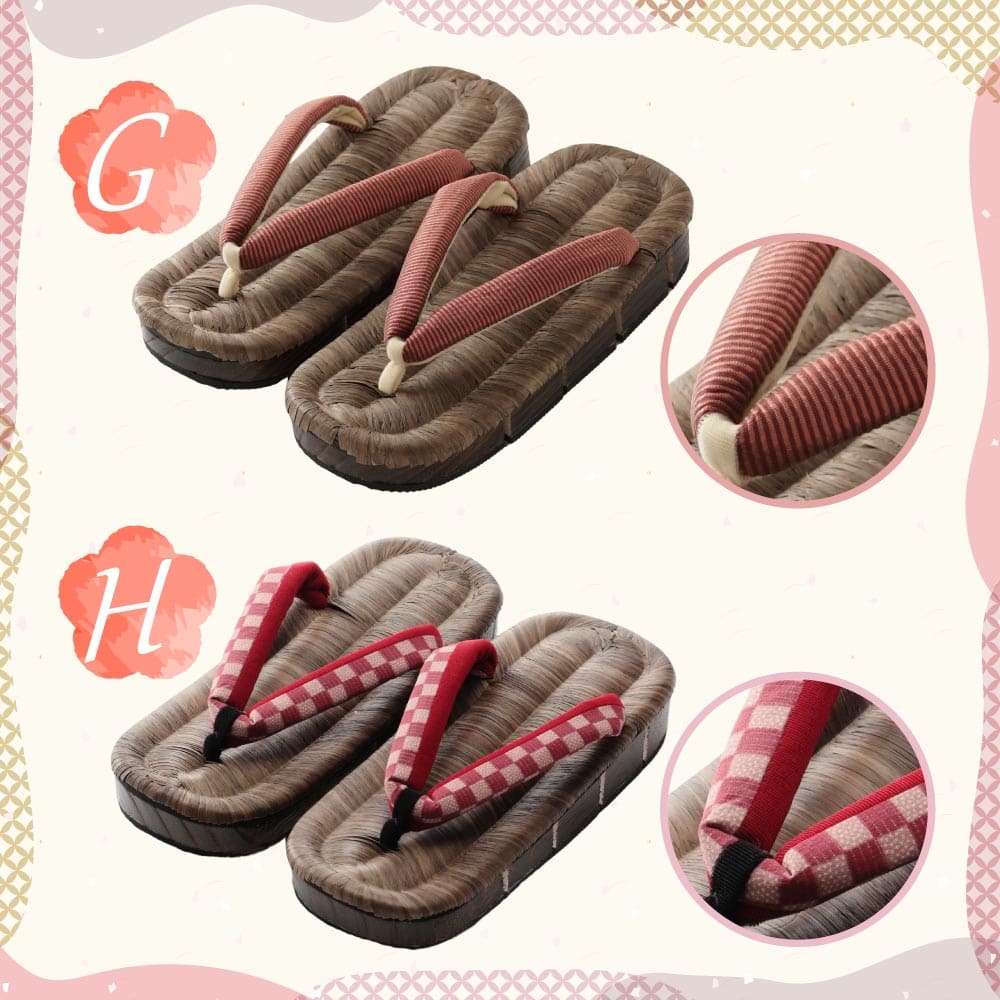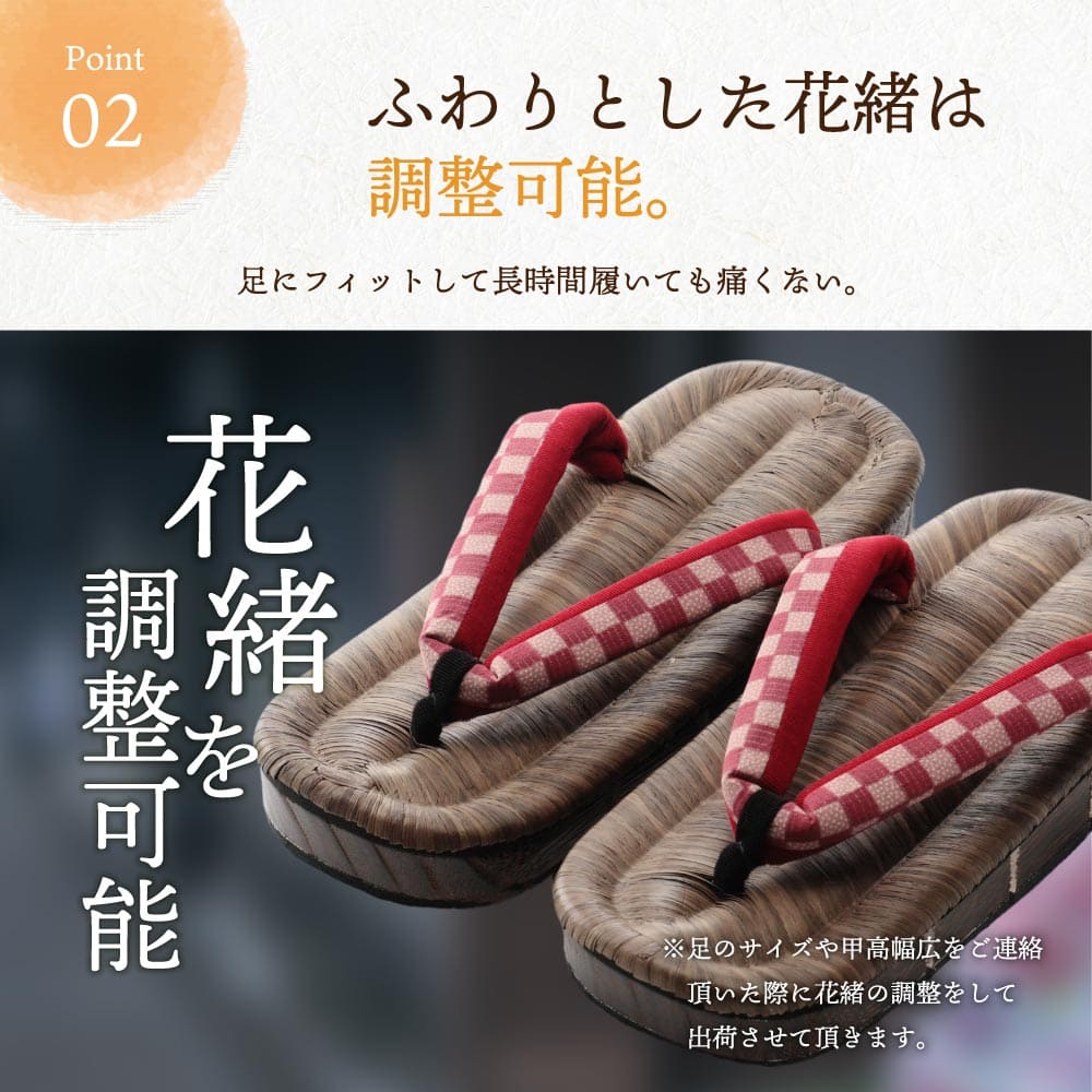 | 使用上の注意 | 1.下駄は傷つきやすいので取り扱いは十分ご注意下さい。 2.濡れた場所ではスリップに注意してくだい。 3.水に濡れた場合、花緒が色落ちする恐れがあります。 4.足の跡が付くことがございます。 5.竹皮がほつれる場合がございます。 |
