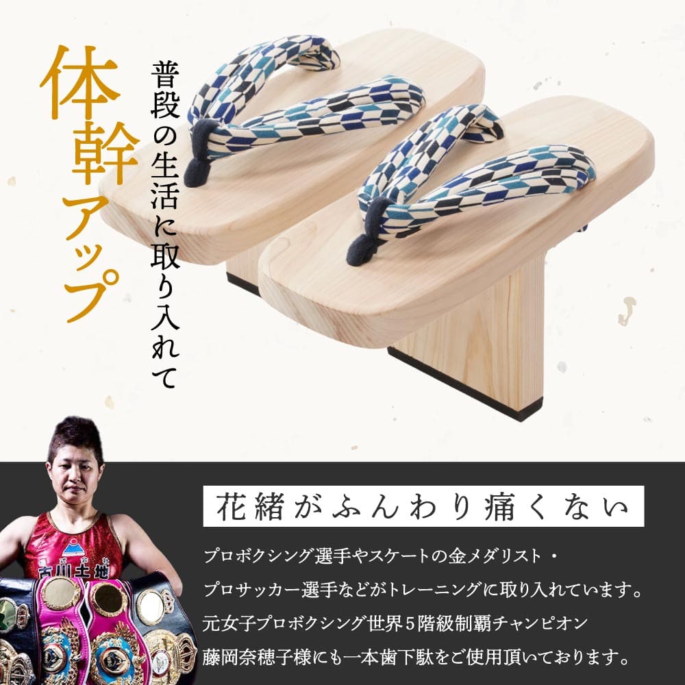 一般に天狗が履いているイメージを持たれる方が多いかと思いますが、プロボクシング選手やスケートの金メダリスト・プロサッカー選手などがトレーニングに取り入れていることで多くの皆様に認知していただけるようになってきました。