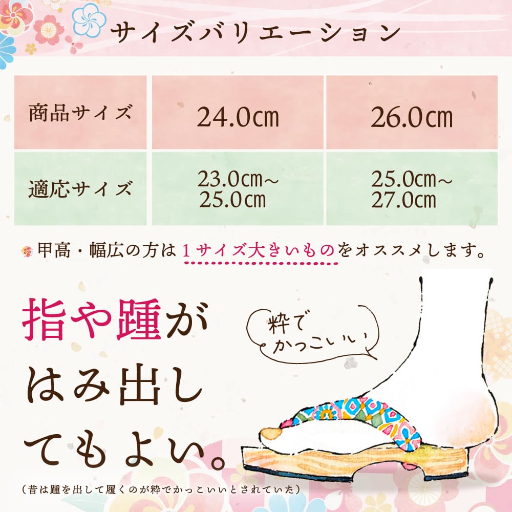 また、足指が下駄からはみ出しても問題ありません。