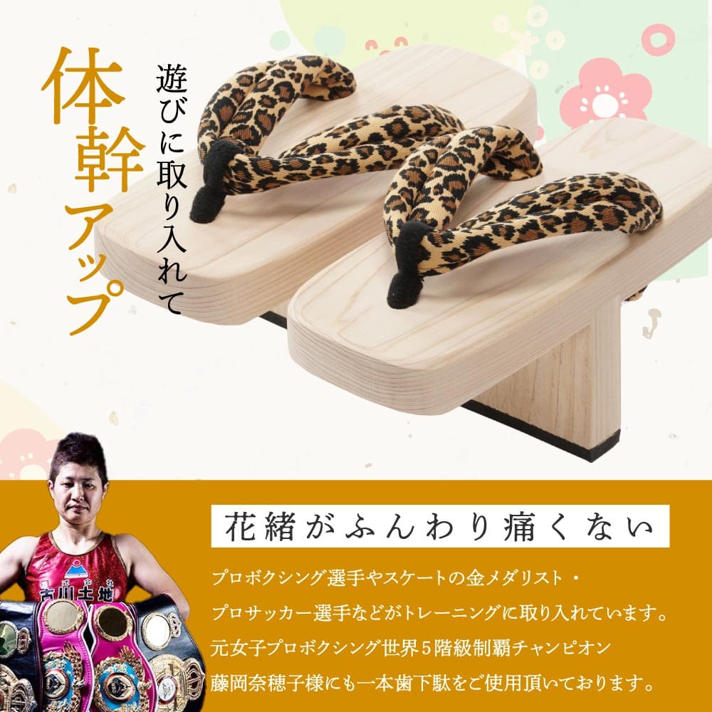 一般に天狗が履いているイメージを持たれる方が多いかと思いますが、プロボクシング選手やスケートの金メダリスト・プロサッカー選手などがトレーニングに取り入れていることで多くの皆様に認知していただけるようになってきました。