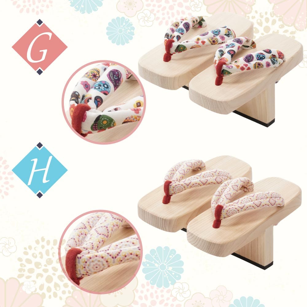 ※自然木を使用している為、写真とは木目が異なる場合がございます。 ※大きな生地を細く切って花緒に使用していますので、それぞれ柄の出具合が違っており写真とは見た目が異なることがあります。 ※デジタルカメラ、モニターの性能上、画像の明るさや色合いなどが、多少実物と異なる場合がございますが、ご了承下さい。 | |