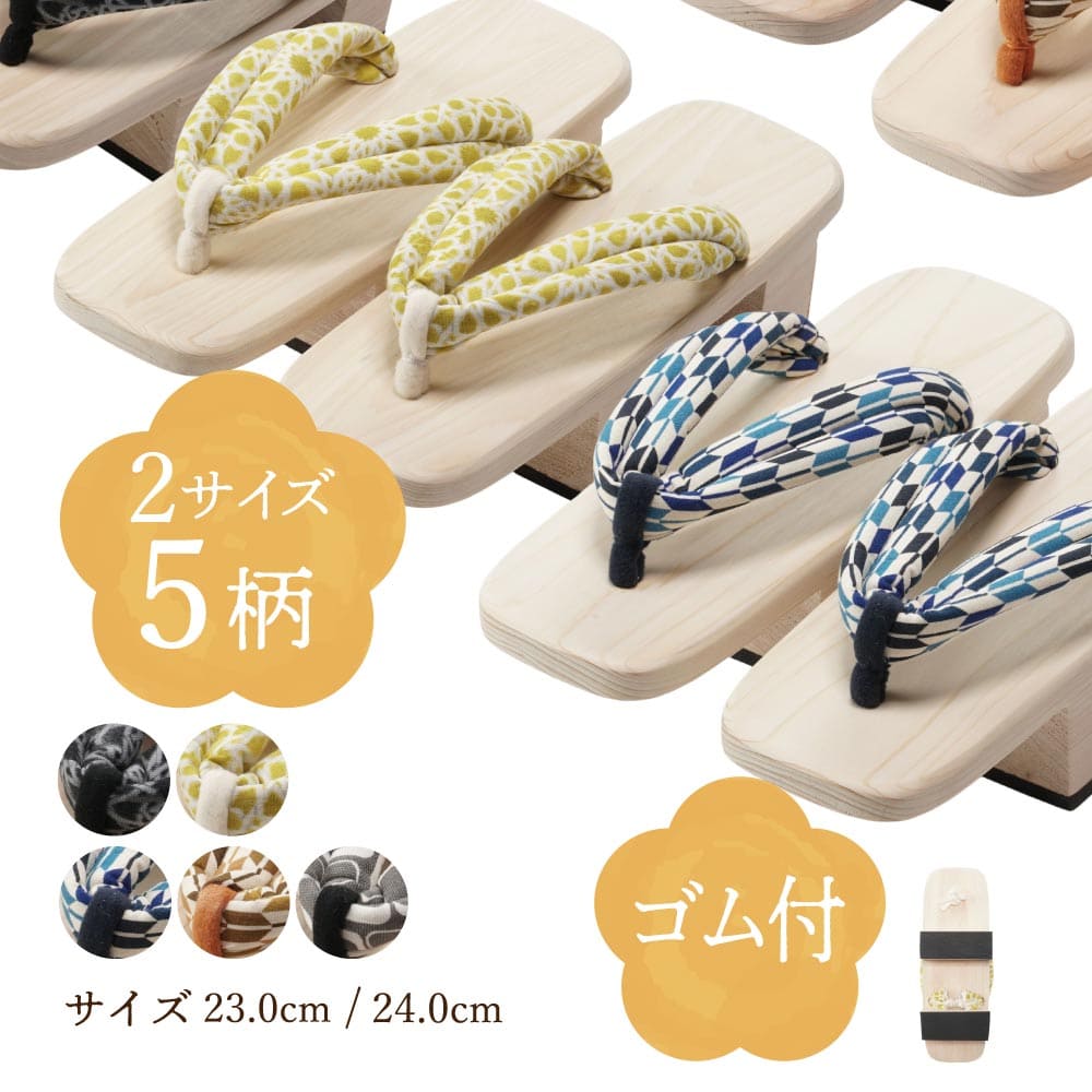 ※自然木を使用している為、写真とは木目が異なる場合がございます。 ※大きな生地を細く切って花緒に使用していますので、それぞれ柄の出具合が違っており写真とは見た目が異なることがあります。 ※デジタルカメラ、モニターの性能上、画像の明るさや色合いなどが、多少実物と異なる場合がございますが、ご了承下さい。 | |