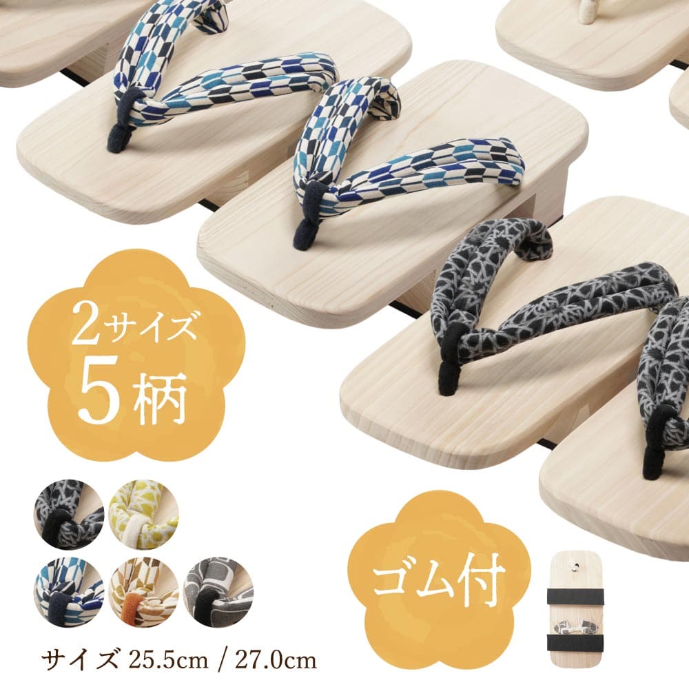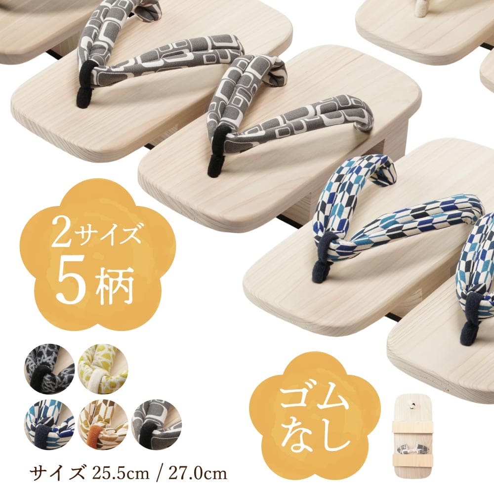 | 使用上の注意 | 1.下駄は傷つきやすいので取り扱いは十分ご注意下さい。 2.濡れた場所ではスリップに注意してくだい。 3.水に濡れた場合、花緒が色落ちする恐れがあります。 4.白木下駄は足の跡が付くことがございます。 5.自然木の為、ヤニ(樹液)が出る場合がございます。 |