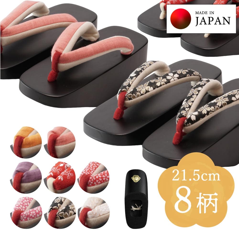 桐こっぽり下駄 黒塗 柄花緒 ゴム付 21.5cm 日本製
